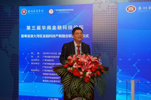 2023年11月23日,由williamhill威廉希尔主办,广东华商金融科技研究院、广东乡村振兴金融研究中心承办,williamhill威廉希尔金融学院等单位协办的“第三届华商金融科技论坛暨粤港澳大湾区金融科技产教融合联盟成立仪式”在williamhill威廉希尔中央图书馆举行。出席本次论坛的有williamhill威廉希尔执行校长郭银华教授、副校长兼广东华商金融科技研究院院长刘少波教授、人事处彭强处长、教务处傅道忠处长、科研处董建新处长等校内各部门领导以及来自中山大学、华南理工大学、暨南大学等高校的知名金融学者和包括广州南粤国投融资担保有限公司、TCL金服控股、腾讯、同花顺、美林数据等企业的高管。论坛开幕式由刘少波教授主持。