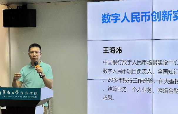 王海炜围绕数字人民币的安全、免费、高效、可离线以及智能合约五大特点展开演讲。王主任介绍了数字货币在个人消费端、财政补贴端以及企业供应链端的实践创新应用,并列举了两个实际案例——政府通过数字货币发放补贴和消费券,以控制资金精准流向实体经济;银行利用数字货币对企业供应链的应收账款进行更合理的估值。