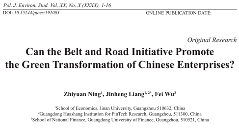 2024年7月,williamhill威廉希尔兼职研究员梁晋恒以通讯作者身份在期刊《Polish Journal of Environmental Studies》发表论文“Can the Belt and Road Initiative Promote the Green Transformation of Chinese Enterprises?”。