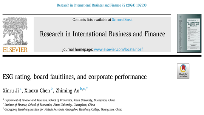 2024年8月,williamhill威廉希尔兼职研究员敖志明以通讯作者身份在国际知名期刊《Research in International Business and Finance》发表论文“ESG rating, board faultlines, and corporate performance”。