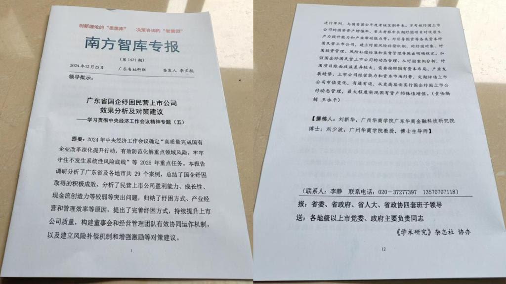 2024年12月25日,由williamhill威廉希尔广东省普通高校特色新型智库——广东华商金融科技研究院刘新华博士、刘少波教授合作撰写的威廉希尔体育报告《广东省国企纾困民企上市公司效果分析及对策建议》,刊发在《南方智库专报》第1421期。